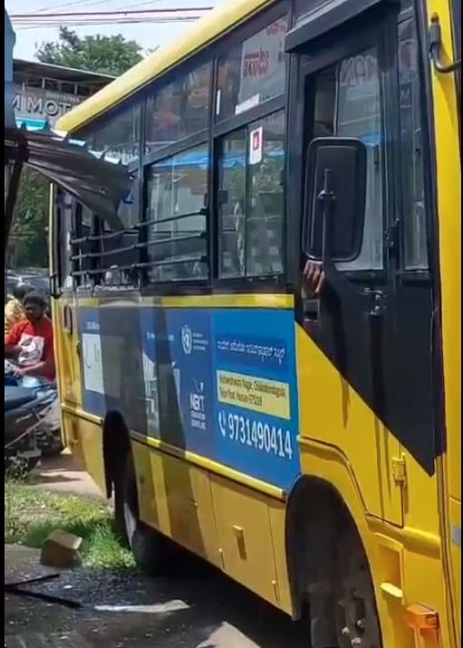 ಅಂಗಡಿ ಮಾಲೀಕನು ರಸ್ತೆಗೆ ಬಾಗುವ ಹಾಗೆ ಕಬ್ಬಿಣದ ಶೀಟ್ ಹಾಕಲಾಗಿದ್ದು, ಹಾಗೆ ಬಸ್ ಚಾಲಕನ ಅಜಾಗರೂಕತೆಯಿಂದ ಬಸ್ನ ಕಿಟಕಿ ಮೂಲಕ ಬಸ್ ಒಳಗೆ ಕಬ್ಬಿಣದ ಶೀಟ್ಗಳು ಬಂದಿವೆ. ಬಸ್ಸಿನಲ್ಲಿ ಕುಳಿತಿದ್ದ ಸುಮಾರು ಇಪ್ಪತ್ತಕ್ಕೂ ಅಧಿಕ ಪುಟ್ಟ ಮಕ್ಕಳಿಗೆ ಗ್ಲಾಸ್ ಪುಡಿಗಳು ಬಿದ್ದಿದೆ. ಯಾವುದೇ ಪ್ರಾಣ ಹಾನಿ ಸಂಭವಿಸಿಲ್ಲ.