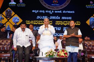 ಇವರು ಕನ್ನಡ ಮತ್ತು ಸಂಸ್ಕೃತಿ ಇಲಾಖೆಯ 2024-25ನೇ ಸಾಲಿನ ಜೀವಮಾನ ಸಾಧನೆಯ ವಿವಿಧ ಪ್ರಶಸ್ತಿಗಳನ್ನು ವಿತರಿಸಿ, ಪ್ರಶಸ್ತಿ ಪುರಸ್ಕೃತರನ್ನು ಅಭಿನಂದಿಸಿ ಮಾತನಾಡಿದ್ರು. ಪ್ರಶಸ್ತಿಗಳನ್ನು ನಿರೀಕ್ಷಿಸದೇ ತಮ್ಮ ತಮ್ಮ ಕ್ಷೇತ್ರದಲ್ಲಿ ಸಾಧನೆ ಮಾಡಿದವರನ್ನು ಗುರುತಿಸಿ ಪ್ರಶಸ್ತಿಗಳನ್ನು ನೀಡುವ ಕೆಲಸವನ್ನು ಕನ್ನಡ ಮತ್ತು ಸಂಸ್ಕೃತಿ ಇಲಾಖೆ ಮಾಡುತ್ತಿದೆ. ಇದರ ಅಂಗವಾಗಿ 18 ಮಂದಿ ಸಾಧಕರಿಗೆ ಪ್ರಶಸ್ತಿ ನೀಡಿದ್ದೇವೆ. ಇದರಲ್ಲಿ ಮೂರು ಪ್ರಶಸ್ತಿಗೆ 10 ಲಕ್ಷ ರೂಪಾಯಿ ನೀಡಲಾಗುತ್ತಿದೆ. ಉಳಿದ ಪ್ರಶಸ್ತಿಗಳಿಗೆ 5 ಲಕ್ಷ ರೂಪಾಯಿ ನೀಡಲಾಗುತ್ತಿದೆ.