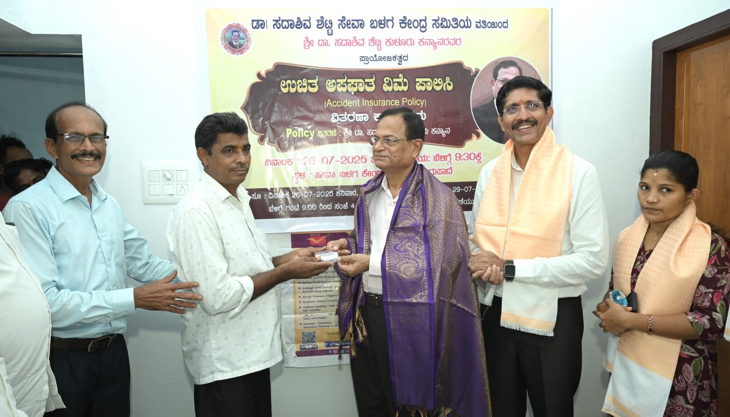ಇದರ ಅಪಘಾತ ವಿಮಾ ಪಾಲಿಸಿ ವಿತರಣೆ ಚಿಗುರುಪಾದೆಯಲ್ಲಿರುವ ಶ್ರೀ ಸದಾಶಿವ ಶೆಟ್ಟಿ ಸೇವಾ ಬಳಗದ ಕೇಂದ್ರ ಸಮಿತಿಯ ಕಚೇರಿಯಲ್ಲಿ ನಡೆದಿದೆ. ಕನ್ಯಾನ ಡಾ.ಸದಾಶಿವ ಶೆಟ್ಟಿಯವರ ಪ್ರಾಯೋಜಕತ್ವದಲ್ಲಿ ನಡೆಯುತ್ತಿರುವ ಈ ಯೋಜನೆಯ ವಿಮಾ ಪಾಲಿಸಿಯನ್ನು ಡಾ.ಸದಾಶಿವ ಶೆಟ್ಟಿಯವರು ಫಲಾನುಭವಿಗಳಿಗೆ ವಿತರಿಸಿದ್ದಾರೆ. ಇನ್ನು ಈ ಕಾರ್ಯಕ್ರಮದಲ್ಲಿ ಪೋಸ್ಟಲ್ ಪೇಮೆಂಟ್ ಬ್ಯಾಂಕಿನ ಸೀನಿಯರ್ ಮ್ಯಾನೇಜರ್ ಮಾನಸ್ ಜಾರ್ಜ್, ಡಾ.ಕೆ. ಸದಾಶಿವ ಶೆಟ್ಟಿ ಅವರ ಸಹೋದರ ಚಂದ್ರಹಾಸ ಶೆಟ್ಟಿ ಕುಳೂರು ಕನ್ಯಾನ, ಶ್ರೀ ಸದಾಶಿವ ಶೆಟ್ಟಿ ಸೇವಾ ಬಳಗದ ಉಪಾಧ್ಯಕ್ಷರಾದ ನಾರಾಯಣ ನೈಕ್ ನಡುಹಿತ್ಲು, ಪ್ರಧಾನ ಕಾರ್ಯದರ್ಶಿ ಜಯರಾಜ್ ಶೆಟ್ಟಿ ಚಾರ್ಲ, ಕೋಶಾಧಿಕಾರಿ ಕಾರ್ತಿಕ್ ಶೆಟ್ಟಿ ಮಜಿಬೈಲ್ ಸೇರಿದಂತೆ ಹಲವರು ಭಾಗಿಯಾಗಿದ್ರು.