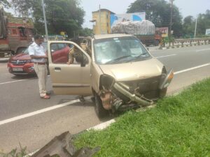 ಕಿನ್ನಿಗೋಳಿ ಕಡೆಯಿಂದ ಮುಲ್ಕಿ ಕಡೆಗೆ ಬರುತ್ತಿದ್ದ ಕಾರು ರಾಷ್ಟ್ರೀಯ ಹೆದ್ದಾರಿ ಜಂಕ್ಷನ್ ಬಳಿ ಹೆದ್ದಾರಿ ಕ್ರಾಸ್ ಮಾಡುತ್ತಿದ್ದಾಗ ಮಂಗಳೂರು ಕಡೆಯಿಂದ ಉಡುಪಿ ಕಡೆಗೆ ಹೋಗುತ್ತಿದ್ದ ಲಾರಿ ಡಿಕ್ಕಿ ಹೊಡೆದಿದೆ. ಅಪಘಾತದ ರಭಸಕ್ಕೆ ಕಾರಿನ ಎದುರು ಭಾಗ ಹಾನಿಯಾಗಿದ್ದು, ಕಾರಿನ ಚಾಲಕ ಮುಲ್ಕಿ ಕೊಳಚಿ ಕಂಬಳ ನಿವಾಸಿ ಅಲ್ತಾಫ್ ಹಾಗೂ ಮತ್ತೋರ್ವ ಮಹಿಳೆ ಅಪಾಯದಿಂದ ಪಾರಾಗಿದ್ದಾರೆ. ಅಪಘಾತದಿಂದ ಹೆದ್ದಾರಿ ಸಂಚಾರ ವ್ಯತ್ಯಯ ಉಂಟಾಗಿದ್ದು ಕೂಡಲೇ ಸ್ಥಳಕ್ಕೆ ಮಂಗಳೂರು ಉತ್ತರ ಟ್ರಾಫಿಕ್ ಪೊಲೀಸರು ಭೇಟಿ ನೀಡಿ ಪರಿಶೀಲಿಸಿದ್ದಾರೆ. ಅಪಘಾತಕ್ಕೀಡಾದ ಕಾರನ್ನು ಸ್ಥಳೀಯರ ನೆರವಿನೊಂದಿಗೆ ತೆರವುಗೊಳಿಸಿದ್ದಾರೆ. ರಾಷ್ಟ್ರೀಯ ಹೆದ್ದಾರಿ ಚತುಷ್ಪಥಗೊಂಡ ಬಳಿಕ ಮುಲ್ಕಿ ಬಸ್ ನಿಲ್ದಾಣ ಜಂಕ್ಷನ್, ಬಪ್ಪನಾಡು ಹಾಗೂ ವಿಜಯ ಸನ್ನಿಧಿ ಹೆದ್ದಾರಿ ಜಂಕ್ಷನ್ ಬಳಿ ಅನೇಕ ಅಪಘಾತಗಳು ಸಂಭವಿಸುತ್ತಿದ್ದು ಹೆದ್ದಾರಿ ಇಲಾಖೆ ಅಧಿಕಾರಿಗಳು ಸೂಕ್ತ ಕ್ರಮ ಕೈಗೊಳ್ಳುವಂತೆ ಆಟೋ ಚಾಲಕ ಮೋಹನ್ ಕುಬೆವೂರು ಒತ್ತಾಯಿಸಿದ್ದಾರೆ.