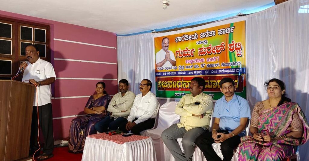 ಭಾರತೀಯ ಜನತಾ ಪಾರ್ಟಿ ಮತ್ತು ಗುರ್ಮೆ ಸುರೇಶ್ ಶೆಟ್ಟಿ ಅಭಿಮಾನಿ ಬಳಗ ಕುರ್ಕಾಲು, ಕುಂಜಾರುಗಿರಿ ಬೂತ್ ಸಂಖ್ಯೆ 97 ರ ಕಾರ್ಯಕರ್ತರಿಂದ ಇಂದು ದಿನಾಂಕ 24-07-2023 ರಂದು ಶಾಸಕರಾದ ಗುರ್ಮೆ ಸುರೇಶ್ ಶೆಟ್ಟಿ ಅವರಿಗೆ ಅಭಿನಂದನಾ ಸಮಾರಂಭ ಎಂ.ಜಿ ನಾಗೇಂದ್ರ ಅವರ ಮನೆಯಲ್ಲಿ ನಡೆಯಿತು.