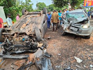 ಕಿನ್ನಿಗೋಳಿ: ಮುಲ್ಕಿ ರಾಜ್ಯ ಹೆದ್ದಾರಿಯಲ್ಲಿ ಮುಖಾಮುಖಿ ಢಿಕ್ಕಿ ಹೊಡೆದ ಕಾರು..!!