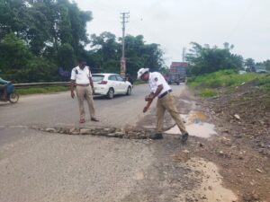 ಬಿಸಿರೋಡಿನಲ್ಲಿ ಟ್ರಾಫಿಕ್ ಪೋಲೀಸ್ ಸಿಬ್ಬಂದಿಗಳು ರಾಷ್ಟ್ರೀಯ ಹೆದ್ದಾರಿಯ ಗುಂಡಿಗಳನ್ನು ಮುಚ್ಚಿದ ಅಪರೂಪದ ಸಂಗತಿಯೊಂದು ಇಂದು ಕಂಡು ಬಂದಿದೆ.