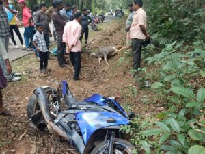 ಚಲಿಸುತ್ತಿದ್ದ ಬೈಕ್ ವೊಂದು ದಿಢೀರ್ ಆಗಿ ರಸ್ತೆಗೆ ಅಡ್ಡ ಬಂದು ಕಡವೆಗೆ ಡಿಕ್ಕಿ ಹೊಡೆದ ಪರಿಣಾಮ ಸವಾರ ಸ್ಥಳದಲ್ಲೇ ಸಾವನ್ನಪ್ಪಿದ್ದು, ಸಹಸವಾರ ಗಂಭೀರವಾಗಿ ಗಾಯಗೊಂಡ ಘಟನೆ ಶನಿವಾರ ಮಧ್ಯಾಹ್ನ ಕಮಲಶಿಲೆ ಸಮೀಪ ತಾರೆಕುಡ್ಲುನಲ್ಲಿ ಸಂಭವಿಸಿದೆ.