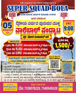 ಬೋಳ: ಅ. 5 ರಂದು ಸೂಪರ್ ಸ್ವ್ಕಾಡ್ ಬೋಳ ಇವರ ವತಿಯಿಂದ ದ್ವಿತೀಯ ವರ್ಷದ ಪುರುಷರ ಮುಕ್ತ ವಾಲಿಬಾಲ್ ಪಂದ್ಯಾಟ..!