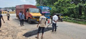 ಈ ಬಾರಿ ಸುರಿದ ಬಾರೀ ಮಳೆಯಿಂದ ಹೆದ್ದಾರಿಯುದ್ದಕ್ಕೂ ಅಲ್ಲಲ್ಲಿ ಗುಂಡಿಗಳು ಬಿದ್ದು ವಾಹನಗಳ ಸಂಚಾರಕ್ಕೆ ತೊಡಕಾಗುತ್ತಿತ್ತು. ಇದೀಗ ಮಳೆ ಕೊಂಚ ಕಡಿಮೆಯಾದ ಕೂಡಲೇ ರಸ್ತೆಯಲ್ಲಿರುವ ಗುಂಡಿಗಳಿಗೆ ಡಾಮರು ಹಾಕಿ ತಾತ್ಕಾಲಿಕವಾಗಿ ಮುಚ್ಚುವ ಕಾರ್ಯ ಮಾಡುತ್ತಿದ್ದಾರೆ.