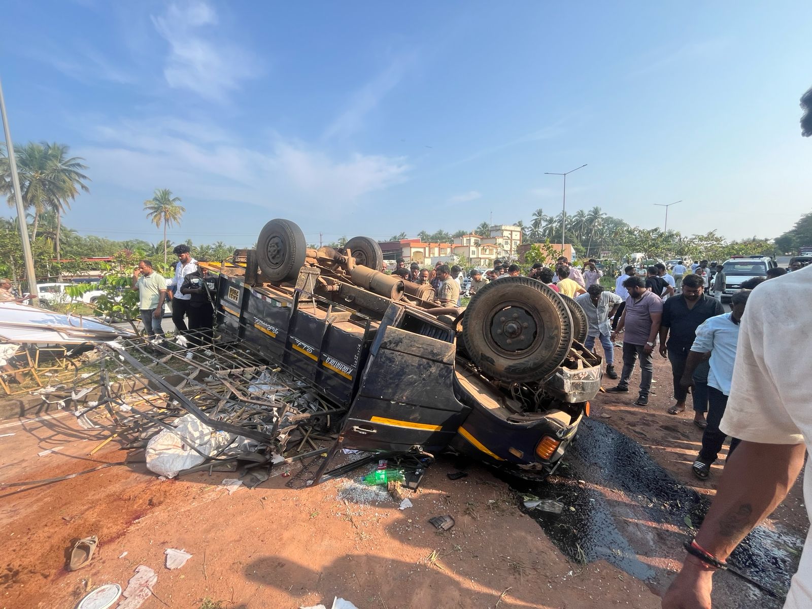 ಕಾಪು ಮಜೂರಿನಿಂದ ಮಲ್ಪೆಗೆ ಡೆಕರೋಷನ್ ಸಂಬಂಧಿಸಿದ ಸಲಕರಣೆಗಳನ್ನು ಸಾಗಿಸುತ್ತಿದ್ದ ಟೆಂಪೋ ಚಾಲಕನ ನಿಯಂತ್ರಣ ತಪ್ಪಿ ಹೆದ್ದಾರಿಯ ಡಿವೈಡರ್ಗೆ ಹತ್ತಿ ರಸ್ತೆಯಲ್ಲಿ ಪಲ್ಟಿಯಾಗಿ ಬಿದ್ದಿದೆ. ಟೆಂಪೋದಲ್ಲಿ ಒಟ್ಟು 12 ಮಂದಿ ಕೆಲಸಗಾರರು ಸಾಗುತ್ತಿದ್ದು, ಹಲವು ಮಂದಿ ಗಂಭೀರವಾಗಿ ಗಾಯಗೊಂಡಿದ್ದಾರೆ.