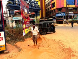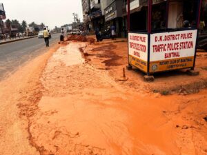 ಬಿಸಿರೋಡಿನ ಕೈಕಂಬ ಪೊಳಲಿ ದ್ವಾರದ ಬಳಿ ಪೋಲೀಸ್ ಪಾಯಿಂಟ್ನ ಪಕ್ಕ ರಾಷ್ಟ್ರೀಯ ಹೆದ್ದಾರಿಯ ಬದಿಯಲ್ಲಿ ಗೇಲ್ ಗ್ಯಾಸ್ ಕಂಪೆನಿಯವರಿಂದ ಕಾಮಗಾರಿ ನಡೆಯುತಿದ್ದು, ರಸ್ತೆ ಬದಿ ಹಾಗೂ ರಸ್ತೆಗೂ ಕೆಸರು ಮಿಶ್ರಿತ ನೀರು ಹರಿದುಹೋಗಿದೆ. ಇದರಿಂದ ವಾಹನಗಳು ಕೆಸರು ಮಯವಾದರೆ ರಸ್ತೆ ಬದಿಯಲ್ಲಿ ನಡೆದುಕೊಂಡು ಹೋಗುವ ಪಾದಚಾರಿಗಳು ಎದ್ದು ಬಿದ್ದು ಹೋಗುವಂತಾಗಿದೆ.