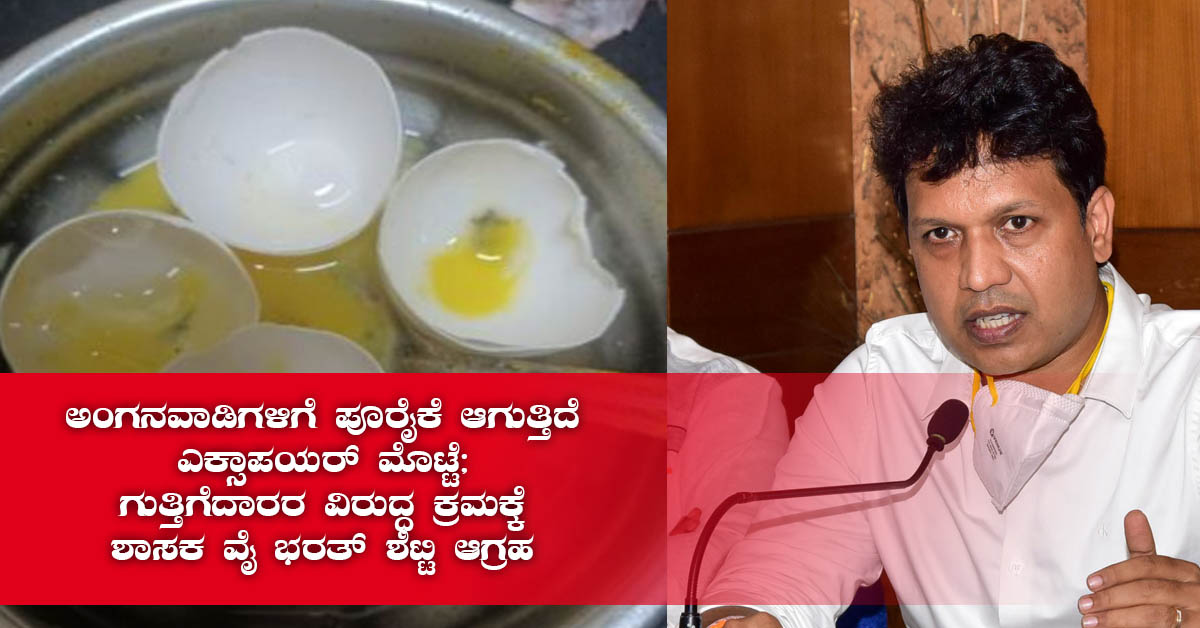 ಮಂಗಳೂರಿನ ಹಲವಾರು ಅಂಗನವಾಡಿಗಳಿಗೆ ಕೊಳೆತ ಮೊಟ್ಟೆ ಪೂರೈಕೆ ಆಗುತ್ತಿರುವುದು ಕಂಡು ಬಂದಿದೆ ಎಂದು ಶಾಸಕ ಡಾ. ವೈ. ಭರತ್ ಶೆಟ್ಟಿ ಆರೋಪಿಸಿದ್ದಾರೆ.