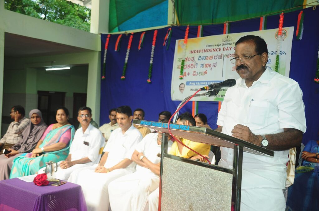 ಪೆರ್ಲ: ಎಣ್ಮಕಜೆ ಗ್ರಾ.ಪಂ.ವತಿಯಿಂದ 77ನೇ ಸ್ವಾತಂತ್ರ್ಯ ದಿನಾಚರಣೆಯನ್ನು ಸಾಧಕರಿಗೆ ಸನ್ಮಾನ, ಎಪ್ಲಸ್ ಅಂಕ ಗಳಿಸಿದ ವಿದ್ಯಾರ್ಥಿಗಳಿಗೆ ಪ್ರತಿಭಾ ಪುರಸ್ಕಾರ ಹಾಗೂ ದೇಶ ಭಕ್ತಿ ಗೀತೆಗಳ ಸಂಗೀತ ಸೌರಭ ಕಾರ್ಯಕ್ರಮದೊಂದಿಗೆ ವೈವಿಧ್ಯಮಯವಾಗಿ ಆಚರಿಸಲಾಯಿತು. ಬಜಕೂಡ್ಲು ಸಮೀಪದ ಕಾನ ಎಂಬಲ್ಲಿರುವ ಸಾಂತ್ವನ ವಿಶೇಷ ಬಡ್ಸ್ ಶಾಲೆಯ ಸಭಾಂಗಣದಲ್ಲಿ ನಡೆದ ಕಾರ್ಯಕ್ರಮವನ್ನು ಸಂಸದ ರಾಜ್ ಮೋಹನ್ ಉಣ್ಣಿತ್ತಾನ್ ಉದ್ಘಾಟಿಸಿದರು. ಎಣ್ಮಕಜೆ ಗ್ರಾ.ಪಂ.ಅಧ್ಯಕ್ಷ ಸೋಮಶೇಖರ್ ಜೆ.ಎಸ್.ಅಧ್ಯಕ್ಷತೆ ವಹಿಸಿದ್ದರು.