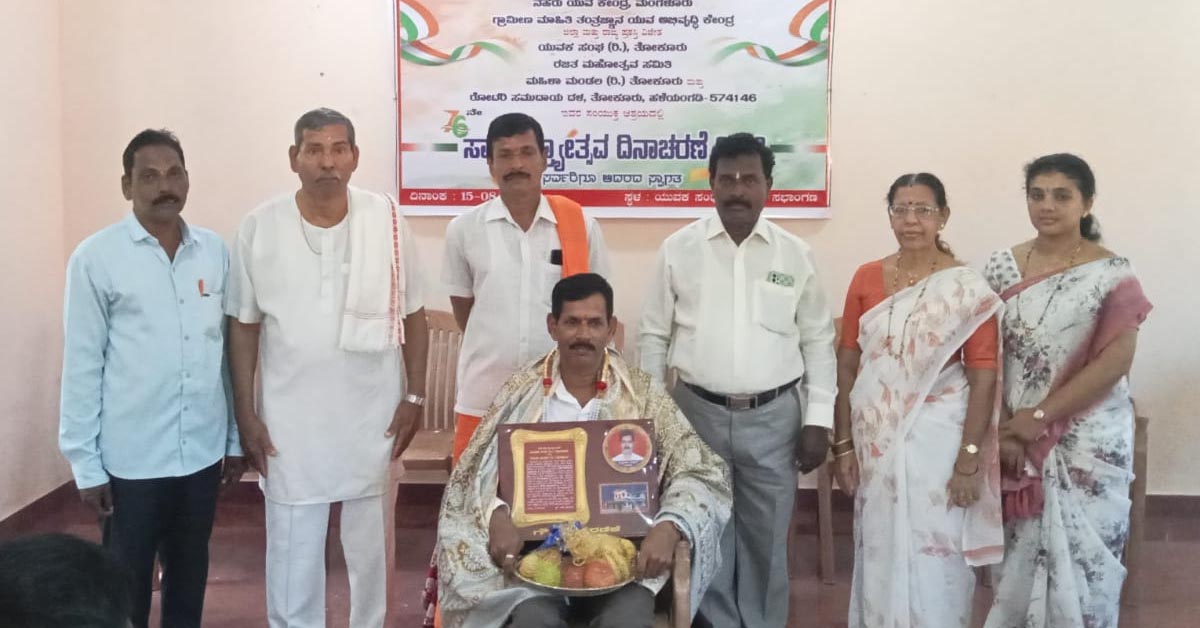 ಮುಲ್ಕಿ: ಭಾರತ ಸರ್ಕಾರದ ನೆಹರು ಯುವ ಕೇಂದ್ರ ಮಂಗಳೂರು, ಗ್ರಾಮೀಣ ಮಾಹಿತಿ ತಂತ್ರಜ್ಞಾನ ಮತ್ತು ಅಭಿವೃದ್ಧಿ ಕೇಂದ್ರ, ಜಿಲ್ಲಾ ಮತ್ತು ರಾಜ್ಯ ಪ್ರಶಸ್ತಿ ವಿಜೇತ ಯುವಕ ಸಂಘ (ರಿ.)ತೋಕೂರು, ರಜತ ಮಹೋತ್ಸವ ಸಮಿತಿ ಮಹಿಳಾ ಮಂಡಲ (ರಿ.) ತೋಕೂರು ಮತ್ತು ರೋಟರಿ ಸಮುದಾಯ ದಳ ತೋಕೂರು ಇವರ ಸಂಯುಕ್ತ ಆಶ್ರಯದಲ್ಲಿ ಸ್ವಾತಂತ್ರ್ಯೋತ್ಸವವನ್ನು ನಿವೃತ್ತ ಭೂಸೇನಾ ಯೋಧರಾದ ಕೂಳೂರು ಪುಷ್ಪರಾಜ್ ಕುಮಾರ್ ರವರು ಧ್ವಜಾರೋಹಣ ಮಾಡುವ ಮೂಲಕ ಆಚರಿಸಲಾಯಿತು. ಸಮಾರಂಭದಲ್ಲಿ ಅವರನ್ನು ಗೌರವಿಸಿ ಸಮ್ಮಾನಿಸಲಾಯಿತು ಕಾರ್ಯಕ್ರಮದ ಅಧ್ಯಕ್ಷತೆ ವಹಿಸಿದ ರೋಟರಿ ಕ್ಲಬ್ ಮೂಲ್ಕಿಯ ಅಧ್ಯಕ್ಷರಾದ ಭುಜಂಗ ಬಿ ಕವತ್ತಾರ್ ದೇಶಕ್ಕೆ ಸ್ವಾತಂತ್ರ್ಯ ಸಿಕ್ಕರೂ ಇಂದಿಗೂ ಗಡಿಯಲ್ಲಿ ದೇಶವನ್ನು ಕಾಯುವ ಯೋಧರು ತಮ್ಮ ಜೀವದ ಹಂಗು ತೊರೆದು ಪ್ರಾಣ ಪಣಕ್ಕಿಟ್ಟು ನಾಗರಿಕರ ರಕ್ಷಕರಾಗಿ ಸೇವೆಗೈಯುತ್ತಿದ್ದಾರೆ ಅಂತಹ ಸೇವಕರನ್ನು ಈ ಸಂದರ್ಭದಲ್ಲಿ ಗೌರವಿಸಿ ಸಮ್ಮಾನಿಸುವುದು ನಮ್ಮ ಆದ್ಯ ಕರ್ತವ್ಯ ಎಂದು ಕಾರ್ಯಕ್ರಮದ ಅಧ್ಯಕ್ಷೀಯ ಭಾಷಣದಲ್ಲಿ ಹೇಳಿದರು. ರಜತ ಮಹೋತ್ಸವ ಸಮಿತಿ ಮಹಿಳಾ ಮಂಡಲ (ರಿ.)ತೋಕೂರು ವತಿಯಿಂದ ಆಯೋಜಿಸಲಾಗಿದ್ದ ದೇಶ ಭಕ್ತಿಗೀತೆ ಹಾಗೂ ಪ್ರಬಂಧ ಸ್ಪರ್ಧೆಯ ವಿಜೇತರಿಗೆ ಬಹುಮಾನ ವಿತರಿಸಲಾಯಿತು. ರಜತ ಮಹೋತ್ಸವ ಸಮಿತಿಯ ಗೌರವಾಧ್ಯಕ್ಷರಾದ ಯಶೋದಾ ಪಿ ರಾವ್ , ಪಡಪಣಂಬೂರು ಗ್ರಾಮ ಪಂಚಾಯಿತಿನ ಉಪಾಧ್ಯಕ್ಷರು ಹಾಗೂ ರೋಟರಿ ಸಮುದಾಯ ದಳ ತೋಕೂರು ಇದರ ಅಧ್ಯಕ್ಷರಾದ ಹೇಮನಾಥ ಅಮೀನ್ ರೋಟರಿ ಕ್ಲಬ್ ಮೂಲ್ಕಿ ಇದರ ಮಾಜಿ ಅಧ್ಯಕ್ಷರಾದ ರೇಮಂಡ್ ರೆಬೆಲ್ಲೋ ಹಾಗೂ ಗ್ರಾಮಸ್ಥರು ಉಪಸ್ಥಿತರಿದ್ದರು. ಯುವಕ ಸಂಘದ ಅಧ್ಯಕ್ಷರಾದ ಶೇಖರ ಶೆಟ್ಟಿಗಾರ್ ಸ್ವಾಗತಿಸಿ, ಮಹಿಳಾ ಮಂಡಲದ ಅಧ್ಯಕ್ಷೆ ಅನುಪಮಾ ಎ ರಾವ್ ವಂದಿಸಿದರು. ಭುವನ್ ಡಿ ಶೆಟ್ಟಿ ಕಾರ್ಯಕ್ರಮ ನಿರೂಪಿಸಿದರು.