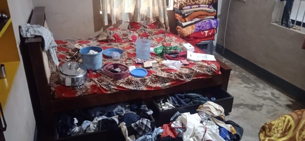 ಇಂದು ಬೆಳಿಗ್ಗೆ ಮನೆಗೆ ಬಂದು ನೋಡಿದಾಗ ಹಿಂಬದಿಯ ಬಾಗಿಲು ತೆರೆದಿತ್ತು. ಸಂಶಯದಿಂದ ಮನೆಯೊಳಗೆ ಹೋಗಿ ನೋಡಿದಾಗ ಬೆಡ್ ರೂಮಿನಲ್ಲಿ ಇದ್ದ ಗೊಡ್ರೇಜ್ ನಲ್ಲಿ ಇರಿಸಲಾಗಿದ್ದ ನಗನಗದು ಕಳವು ವಾಗಿರುವುದು ಗಮನಕ್ಕೆ ಬಂದಿದೆ.