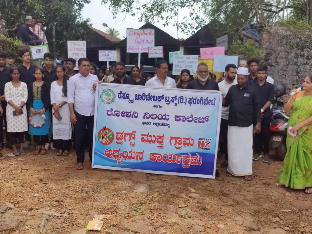 ಬಂಟ್ವಾಳ: ರೆಸ್ಕ್ಯೂ ಚಾರಿಟೇಬಲ್ ಟ್ರಸ್ಟ್ (ರಿ.) ಫರಂಗಿಪೇಟೆ ಹಾಗೂ ರೋಶನಿ ನಿಲಯ ಕಾಲೇಜು ಮಂಗಳೂರು ಇದರ ಅಶ್ರಯದಲ್ಲಿ ಡ್ರಗ್ಸ್ ಮುಕ್ತ ಗ್ರಾಮ ಅಭಿಯಾನ ಕಾರ್ಯಕ್ರಮವನ್ನು ಮಾರಿಪಳ್ಳ ಜಂಕ್ಷನ್, ತುಂಬೆ ಪದವಿ ಪೂರ್ವ ಕಾಲೇಜು ಮತ್ತು ಫರಂಗಿಪೇಟೆ ಜಂಕ್ಷನ್ ನಲ್ಲಿ ಟ್ರಸ್ಟಿನ ಅಧ್ಯಕ್ಷ ಅಬ್ದುಲ್ ಜಬ್ಬಾರ್ ಮಾರಿಪಳ್ಳ ರವರ ಅಧ್ಯಕ್ಷತೆಯಲ್ಲಿ ಜರಗಿತು.