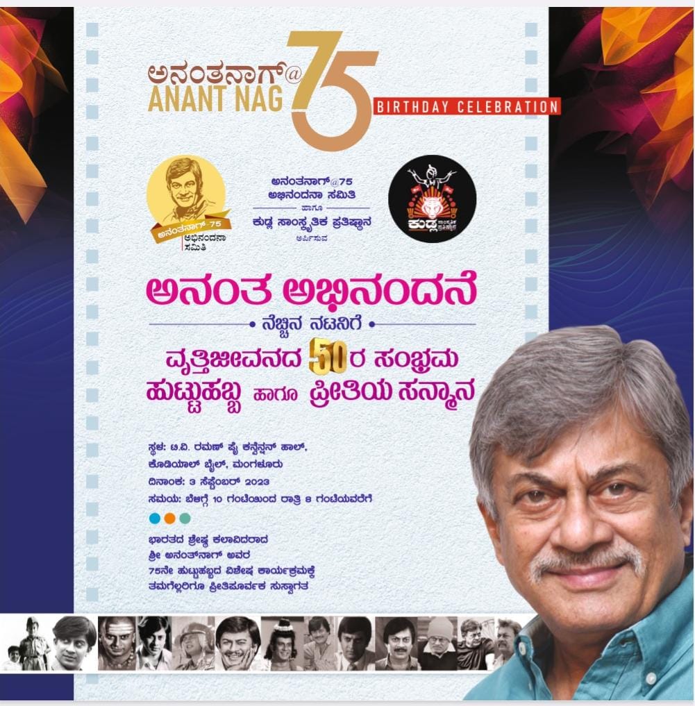 ಈ ದೇಶದ ಮಹಾನ್ ಕಲಾವಿದರಲ್ಲಿ ಅನಂತನಾಗ್ ಕೂಡ ಒಬ್ಬರು. ಅವರ ಐದು ದಶಕಗಳ ಚಿತ್ರಜೀವನ ಯುವಪೀಳಿಗೆಗೆ ಮಾದರಿ. ಅವರ 75 ನೇ ವರ್ಷದ ಜನ್ಮದಿನವನ್ನು ಮಂಗಳೂರಿನಲ್ಲಿ ಅವರ