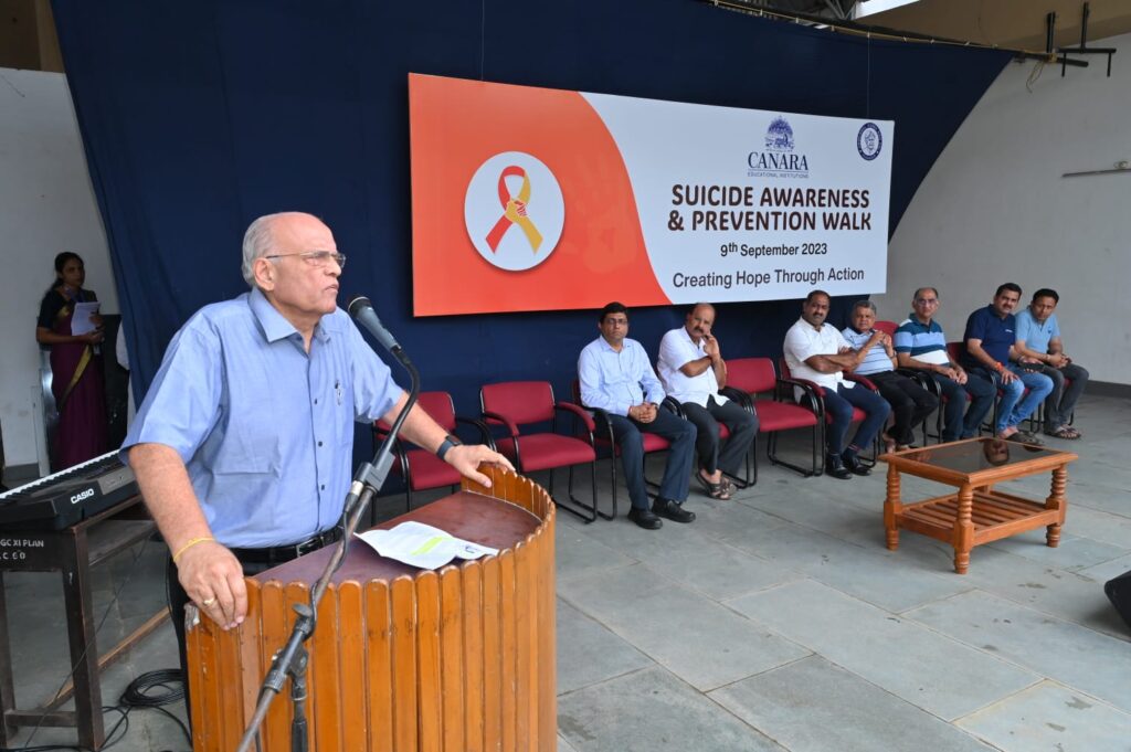 ಕೆನರಾ ಪದವಿಪೂರ್ವ ಕಾಲೇಜು ಆವರಣದಲ್ಲಿ ಸಮಾವೇಶಗೊಂಡ ವಿಶ್ವ ಆತ್ಮಹತ್ಯೆ ತಡೆ ದಿನದ ಅಂಗವಾಗಿ ಕೆನರಾ ಸಮೂಹ ಶಿಕ್ಷಣ ಸಂಸ್ಥೆಗಳ ವಿದ್ಯಾರ್ಥಿಗಳ ಜಾಥವನ್ನು ಉದ್ದೇಶಿಸಿ ಮಾತನಾಡಿದರು ಕೆನರಾ ಪ್ರೌಢಶಾಲೆಗಳುಹಾಗೂ ಪದವಿ ಪೂರ್ವ, ಪದವಿ ಕಾಲೇಜುಗಳ ಆವರಣದಿಂದ ಹೊರಟ ಜಾಥವು ನಗರದ ಅಮ್ಮೆಂಬಳ ಸುಬ್ಬರಾವ್ ಪೈ ರಸ್ತೆ , ನವ ಭಾರತ ವೃತ್ತ, ಬಂಟ್ಸ್ ಹಾಸ್ಟೆಲ್ ವೃತ್ತ, ಮಹಾತ್ಮ ಗಾಂಧಿ ರಸ್ತೆಯಾಗಿ ಕೆನರಾ ಪದವಿಕಾಲೇಜು ಆವರಣದಲ್ಲಿ ಸಮಾವೇಶಗೊಂಡಿತು.