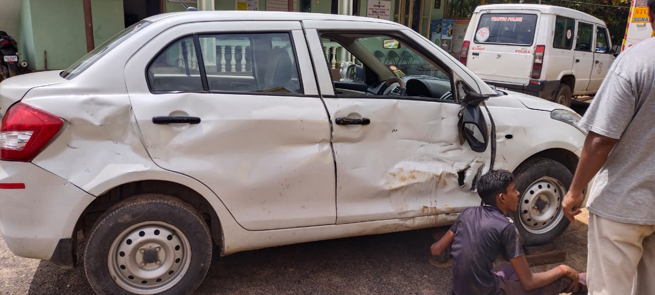 ಮಹಾಲಿಂಗ್ ಭಟ್ ಎಂಬವರ ಖಾಸಗಿ ಕಾರಿಗೆ ಕೆ.ಎನ್.ಆರ್.ಸಿ.ಕಂಪೆನಿಗೆ ಸೇರಿದ ಘನಗಾತ್ರದ ಲಾರಿ ಡಿಕ್ಕಿ ಹೊಡೆದಿದೆ. ಡಿಕ್ಕಿಯ ರಭಸಕ್ಕೆ ಕಾರಿನ ಬಹುಭಾಗ ಜಖಂಗೊಂಡಿದೆಯಲ್ಲದೆ ಎರಡು ಟಯರ್ ಗಳು ಒಡೆದುಹೋಗಿದೆ. ಅದೃಷ್ಟವಶಾತ್ ಕಾರಿನ ಚಾಲಕ ಸಹಿತ ಪ್ರಯಾಣಿಕರಿಗೆ ಯಾವುದೇ ಗಾಯವಾಗಿಲ್ಲ.