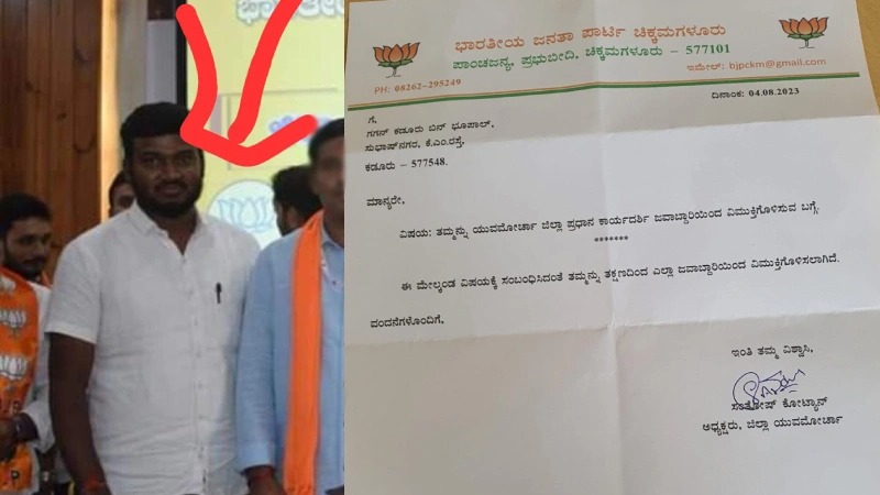 ನಕಲಿ RSS ಪ್ರಚಾರದ ವ್ಯಕ್ತಿಯನ್ನ ಸೃಷ್ಟಿಸಿರುವ ಆರೋಪದಡಿ ಜಿಲ್ಲಾ ಯುವ ಮೋರ್ಚಾ ಪ್ರಧಾನ ಕಾರ್ಯದರ್ಶಿ ಹುದ್ದೆಯಿಂದ ಗಗನ್ ಕಡೂರ್ ನನ್ನು ಉಚ್ಛಾಟನೆ ಮಾಡಲಾಗಿದೆ.