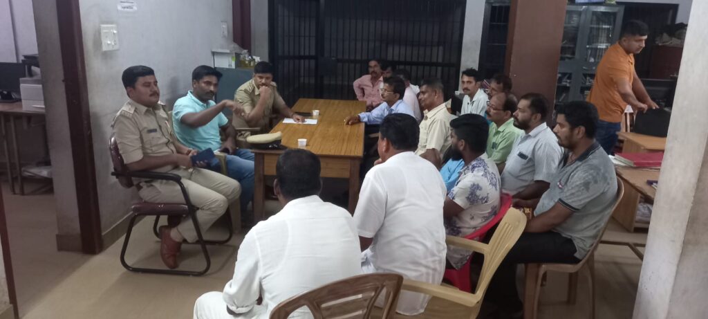 ಬಂಟ್ವಾಳ : ಬಂಟ್ವಾಳ ನಗರ ಪೋಲೀಸ್ ಠಾಣಾ ವ್ಯಾಪ್ತಿಯಲ್ಲಿ ತಾಲೂಕಿನ ವಿವಧ ಕಡೆಗಳಲ್ಲಿ ಆಚರಿಸುವ ಗಣೇಶ ಚತುರ್ಥಿ ಹಬ್ಬದ ಹಿನ್ನೆಲೆಯಲ್ಲಿ ಶಾಂತಿಯುತವಾಗಿ ನಡೆಸುವ ಉದ್ದೇಶದಿಂದ ಸಮಾಜದ ಪ್ರಮುಖರ ಪೂರ್ವಭಾವಿ ಸಭೆ ಬಂಟ್ವಾಳ ನಗರ ಪೋಲೀಸ್ ಠಾಣೆಯಲ್ಲಿ ಪೋಲೀಸ್ ಇನ್ಸ್ ಪೆಕ್ಟರ್ ನಾಗರಾಜ್ ಎಚ್ ಅವರ ನೇತೃತ್ವದಲ್ಲಿ ಸಭೆ ನಡೆಸಿದರು.