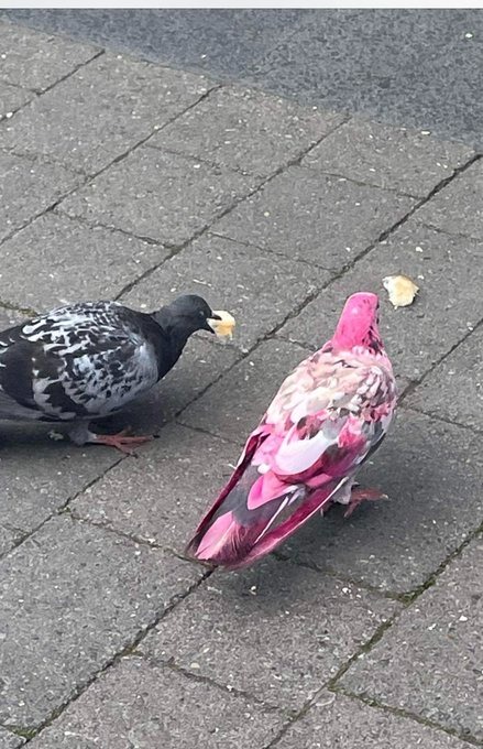 ಇಂಗ್ಲೆಂಡ್ನ ಮ್ಯಾಂಚೆಸ್ಟರ್ನ ಬರಿ ಟೌನ್ ಕಟ್ಟಡ ಒಂದರ ಮೇಲೆ ಆಹಾರವನ್ನು ಹಾಕಲಾಗಿತ್ತು. ಇದನ್ನು ತಿನ್ನಲು ಬಂದಿದ್ದ ಪಾರಿವಾಳವು ಗುಲಾಬಿ ಬಣ್ಣದಲ್ಲಿದ್ದು, ಈ ಪಾರಿವಾಳ ನೋಡಿದ ಜನರು ಅಚ್ಚರಿಗೊಂಡಿದ್ದಾರೆ. ಈ ರೀತಿ ಪಿಂಕ್ ಕಲರ್ ಪಾರಿವಾಳ ಕಾಣುವುದು ಅಪರೂಪದಲ್ಲಿ ಅತೀ ಅಪರೂಪ ಎಂದೇ ಹೇಳಬಹುದು.