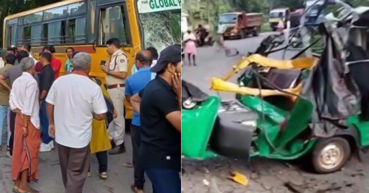 ಮಂಗಳೂರು: ಕರ್ನಾಟಕ-ಕೇರಳ ಗಡಿ ಜಿಲ್ಲೆಯಾದ ಕಾಸರಗೋಡಿನ ಬದಿಯಡ್ಕ ಸಮೀಪ ಪಳ್ಳತ್ತಡ್ಕ ಎಂಬಲ್ಲಿ ಶಾಲಾ ಬಸ್-ಆಟೋ ನಡುವೆ ಭೀಕರ ಅಪಘಾತ ಸಂಭವಿಸಿ ಐವರು ಮೃತಪಟ್ಟಿದ್ದಾರೆ.