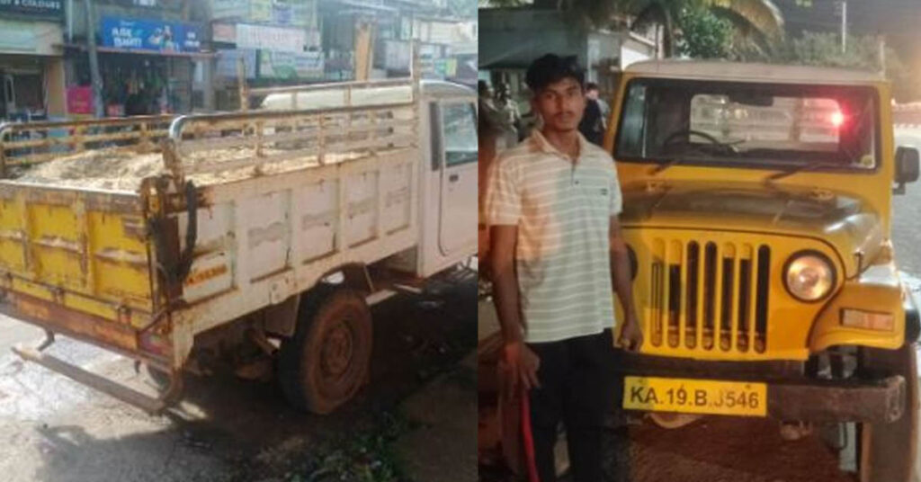 ಉಳ್ಳಾಲ: ಅಕ್ರಮವಾಗಿ ಮರಳು ಸಾಗಾಟ ನಡೆಸುತ್ತಿದ್ದ ಪಿಕಪ್ ವಾಹನವನ್ನು ತಡೆದು ನಿಲ್ಲಿಸಿದ ಉಳ್ಳಾಲ ಠಾಣಾಧಿಕಾರಿ ಹೆಚ್.ಎನ್ ಬಾಲಕೃಷ್ಣ ನೇತೃತ್ವದ ತಂಡ ಆರೋಪಿಯನ್ನು ಬಂಧಿಸಿ, ಮರಳು ಲೋಡ್ ಸಹಿತ ಪಿಕಪ್ ವಾಹನವನ್ನು ವಶಕ್ಕೆ ಪಡೆದುಕೊಂಡಿದ್ದಾರೆ.