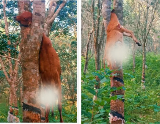ಕರುವಿನ ರುಂಡವು ಮರದ ಕೊಂಬೆಯ ಮಧ್ಯೆ ಸಿಲುಕಿದ್ದು, ಕೆಳಗೆ ಬೀಳದಂತೆ ಆಧಾರವಾಗಿತ್ತು. ಸತ್ತ ಕರುವಿನ ದೇಹದ ಒಂದಷ್ಟು ಭಾಗವನ್ನು ಸೀಳಿ ಮಾಂಸ ಹೊರ ತೆಗೆದು ಚಿರತೆ ತಿಂದಿದೆ. ಉಳಿದ