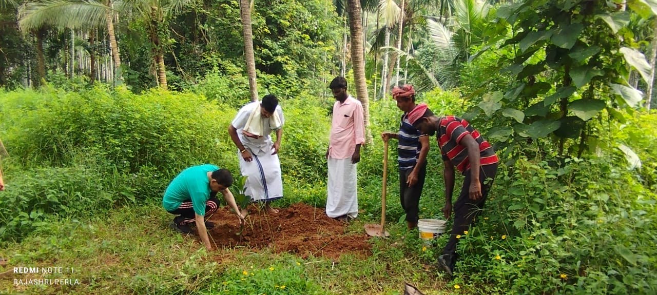 ಪೆರ್ಲ: ಕುದುಕ್ಕೊಳಿ ಹವ್ವಾ ಹಸನ್ ಪೌಂಡೇಶನ್ ವತಿಯಿಂದ ನಡೆಸುತ್ತಿರುವ “ಪ್ರಕೃತಿಯೊಂದಿಗೆ ಮೈತ್ರಿ” ಅಭಿಯಾನದಂತೆ ಕಾಟುಕುಕ್ಕೆ ಶ್ರೀ ಸುಬ್ರಾಯ ದೇವಸ್ಥಾನದ ಜಮೀನಿನಲ್ಲಿ ಉಚಿತವಾಗಿದೇಸೀ ಹಣ್ಣುಗಳ ಗಿಡಗಳನ್ನು ನೆಡಲಾಯಿತು.