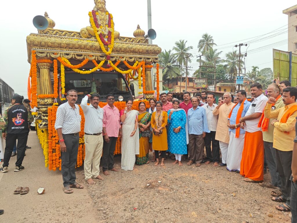 ಹಳೆಯಂಗಡಿ: ಶೌರ್ಯ ಜಾಗರಣ ರಥಯಾತ್ರೆಗೆ ಪುಷ್ಪಾರ್ಚನೆಯ ಸ್ವಾಗತ