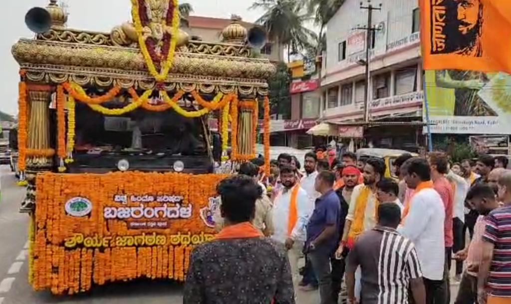 ಬಜರಂಗದಳ ಕರ್ನಾಟಕ ವತಿಯಿಂದ ಮಂಗಳೂರಿನಿ0ದ ಉಡುಪಿಗೆ ಹೊರಡುವ ಶೌರ್ಯ ಜಾಗರಣ ರಥಯಾತ್ರೆಯನ್ನು ಸ್ವಾಗತಿಸಲಾಯಿತು.