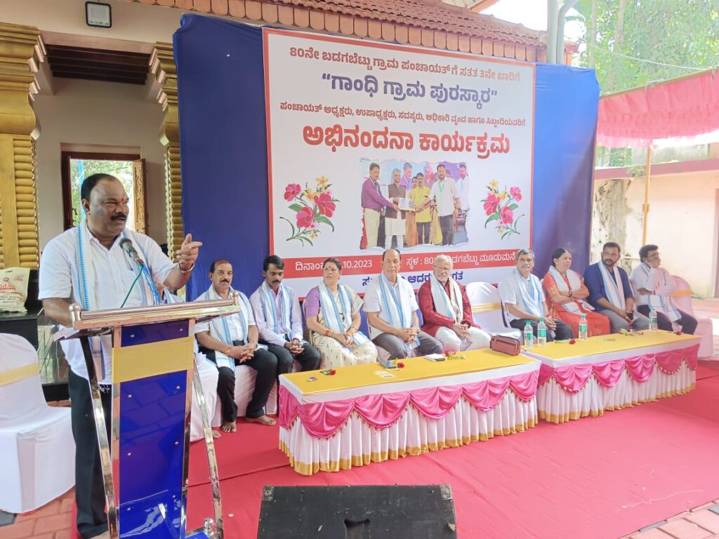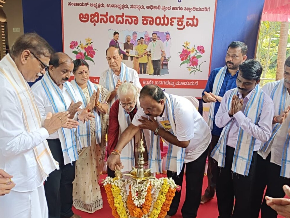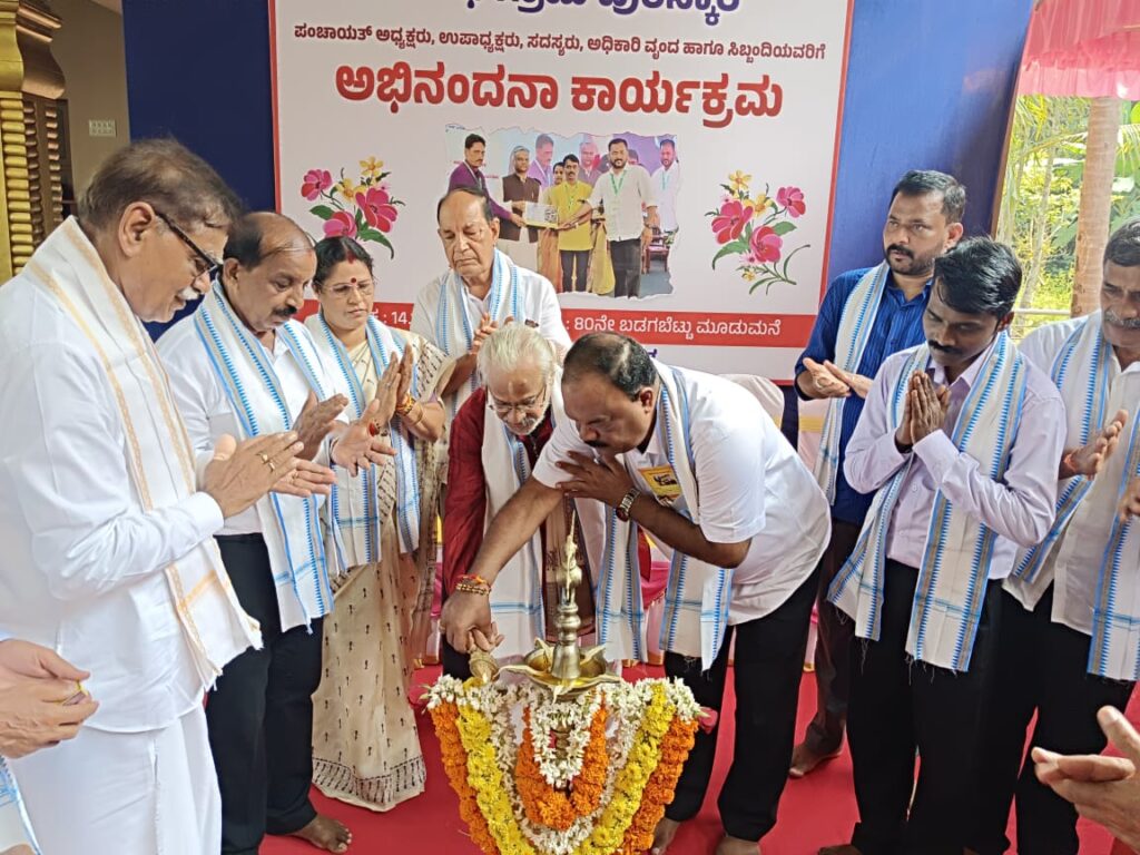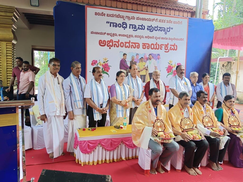 ಉಡುಪಿ: 80ನೇ ಬಡಗಬೆಟ್ಟು ಗ್ರಾಮ ಪಂಚಾಯತ್ ಗೆ ಸತತ ಮೂರು ಬಾರಿ “ಗಾಂಧಿ ಗ್ರಾಮ ಪುರಸ್ಕಾರ” ಲಭಿಸಿದೆ. ಈ ಹಿನ್ನೆಲೆಯಲ್ಲಿ 80 ಬಡಗಬೆಟ್ಟು ಗ್ರಾಮ ಪಂಚಾಯತ್ ಅಧ್ಯಕ್ಷರು, ಉಪಾಧ್ಯಕ್ಷರು, ಸರ್ವ ಸದಸ್ಯರು ಹಾಗೂ ಸಿಬ್ಬಂದಿ ವರ್ಗದವರನ್ನು 80 ಬಡಗಬೆಟ್ಟು ಮೂಡುಮನೆ ಇವರ ವತಿಯಿಂದ ಇಂದು ಅಭಿನಂದಿಸಲಾಯಿತು.ಶಾಸಕ ಗುರ್ಮೆ ಸುರೇಶ್ ಶೆಟ್ಟಿ ಅವರು ಕಾರ್ಯಕ್ರಮವನ್ನು ಉದ್ಘಾಟಿಸಿ, ಪಂಚಾಯತ್ ನ ಅಧ್ಯಕ್ಷರು, ಉಪಾಧ್ಯಕ್ಷರು, ಸರ್ವ ಸದಸ್ಯರು ಹಾಗೂ ಸಿಬ್ಬಂದಿ ವರ್ಗದವರನ್ನು ಅಭಿನಂದಿಸಿ ಶುಭಹಾರೈಸಿದರು.