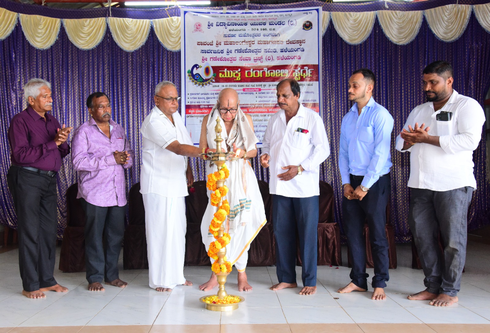 ಕರ್ನಾಟಕ ರಾಜ್ಯ ಪ್ರಶಸ್ತಿ ಪುರಸ್ಕೃತ, ದಕ್ಷಿಣ ಕನ್ನಡ ಜಿಲ್ಲಾ ರಾಜ್ಯೋತ್ಸವ ಪ್ರಶಸ್ತಿ ಪುರಸ್ಕೃತ ಶ್ರೀ ವಿದ್ಯಾ ವಿನಾಯಕ ಯುವಕ ಮಂಡಲ, ಪಾವಂಜೆ ಶ್ರೀ ಮಹಾಲಿಂಗೇಶ್ವರ ಮಹಾಗಣಪತಿ ದೇವಸ್ಥಾನ, ಶ್ರೀ ಗಣೇಶೋತ್ಸವ ಸೇವಾ ಟ್ರಸ್ಟ್ (ರಿ), ಹಳೆಯಂಗಡಿ ಮತ್ತು ಸಾರ್ವಜನಿಕ ಶ್ರೀ ಗಣೇಶೋತ್ಸವ ಸೇವಾ ಸಮಿತಿ ಹಳೆಯಂಗಡಿ, ಶ್ರೀ ವಿದ್ಯಾ ವಿನಾಯಕ ರಜತ ಸೇವಾ ಟ್ರಸ್ಟ್ (ರಿ) ಯುವತಿ ಮತ್ತು ಮಹಿಳಾ ಮಂಡಲ (ರಿ) ಹಳೆಯಂಗಡಿ ಇವರ ಸಹಯೋಗದಲ್ಲಿ ನಡೆದ ಸ್ಪರ್ಧೆಯ ಉಧ್ಘಾಟನಾ ಸಮಾರಂಭದಲ್ಲಿ ಪಾವಂಜೆ ಶ್ರೀ ಮಹಾಲಿಂಗೇಶ್ವರ ಮಹಾಗಣಪತಿ ದೇವಸ್ಥಾನದ ವ್ಯವಸ್ಥಾಪನಾ ಸಮಿತಿಯ ಅಧ್ಯಕ್ಷರಾದ ಬಿ.ಸೂರ್ಯ ಕುಮಾರ್, ದೇವಸ್ಥಾನದ ಜೀರ್ಣೋದ್ಧಾರ ಮತ್ತು ಬ್ರಹ್ಮಕಲಶೋತ್ಸವ ಸಮಿತಿಯ ಅಧ್ಯಕ್ಷರಾದ ರಘು ಕೆ.ದೇವಾಡಿಗ, ಶ್ರೀ ವಿದ್ಯಾವಿನಾಯಕ ಯುವಕ ಮಂಡಲದ ಅಧ್ಯಕ್ಷರಾದ ನಾಗೇಶ್ ಟಿ.ಜಿ., ಸುವರ್ಣ ಮಹೋತ್ಸವ ಸಮಿತಿಯ ಕಾರ್ಯಧ್ಯಕ್ಷರಾದ ಸುಧಾಕರ ಆರ್.ಅಮೀನ್, ಸಲಹಾ ಸಮಿತಿಯ ಅಧ್ಯಕ್ಷರಾದ ಮೋಹನ್ ಬಂಗೇರ ವೇದಿಕೆಯಲ್ಲಿ ಉಪಸ್ಥಿತರಿದ್ದರು.