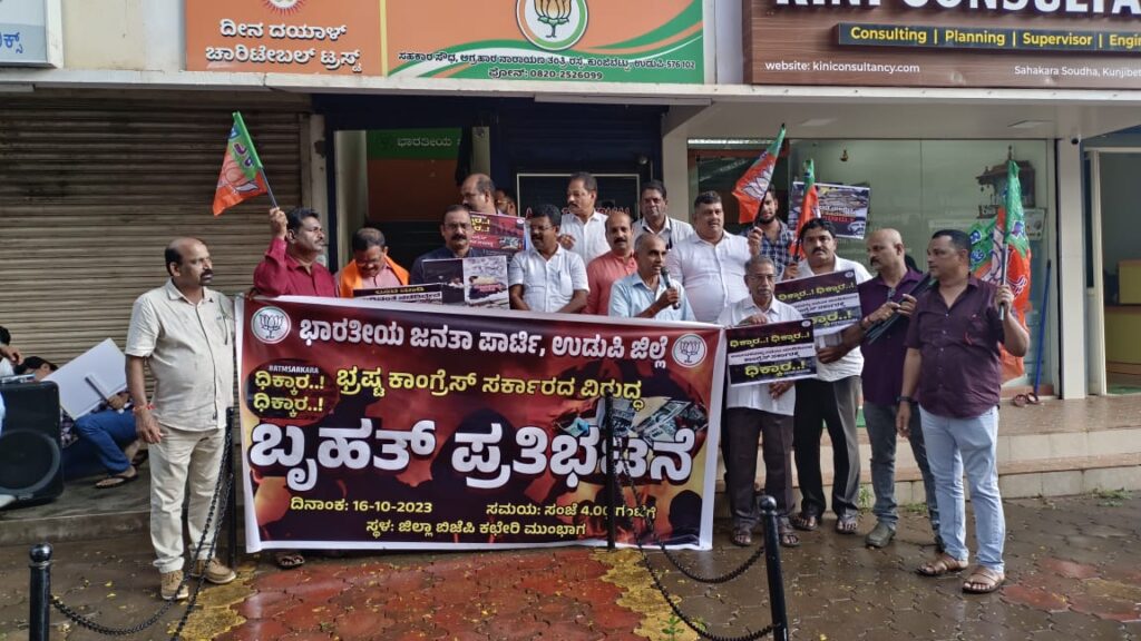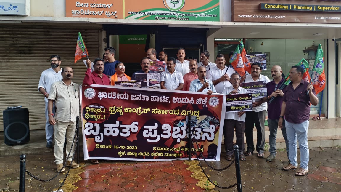 ಉಡುಪಿ: ಬೆಂಗಳೂರಿನಲ್ಲಿ ಕಾಂಗ್ರೆಸ್ ನ ಮಾಜಿ ಕಾರ್ಪೊರೇಟರ್ ಮನೆಯಲ್ಲಿ 42 ಕೋಟಿ ಅಕ್ರಮ ಹಣ ಪತ್ತೆಯಾಗಿರುವುದನ್ನು ಖಂಡಿಸಿ ಉಡುಪಿ ಜಿಲ್ಲಾ ಬಿಜೆಪಿ ವತಿಯಿಂದ ನಗರದ ಬಿಜೆಪಿ ಕಚೇರಿಯ ಮುಂಭಾಗದಲ್ಲಿ ಇಂದು ಪ್ರತಿಭಟನೆ ನಡೆಸಲಾಯಿತು.