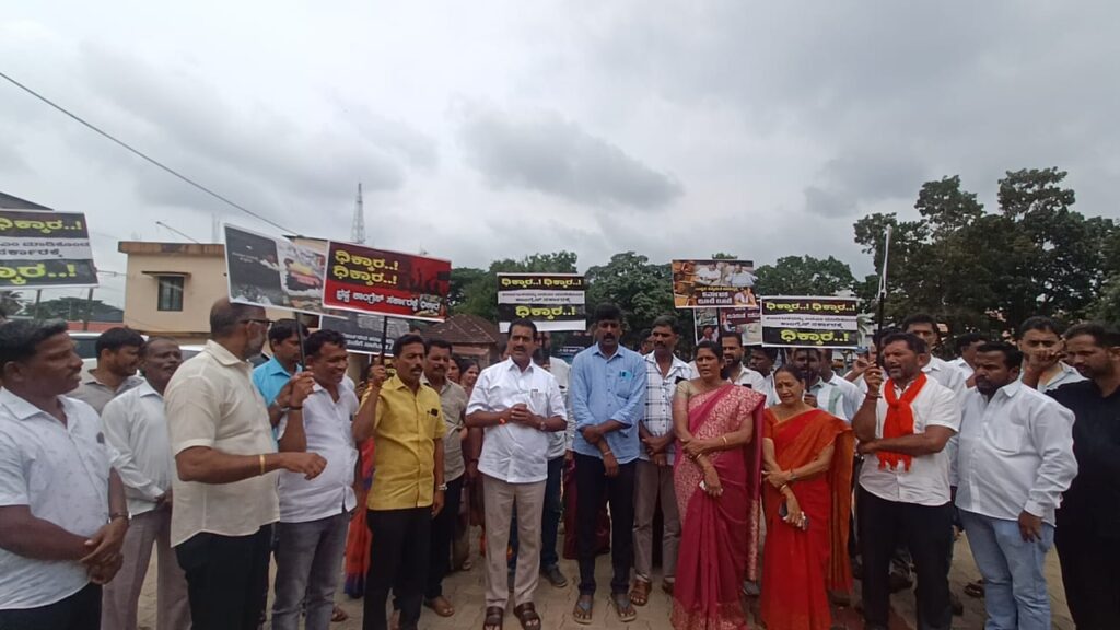 ಪ್ರತಿಭಟನೆಯಲ್ಲಿ ಕಾಂಗ್ರೆಸ್ ಸರಕಾರಕ್ಕೆ ಧಿಕ್ಕಾರವನ್ನು ಹಾಕಲಾಯಿತು. ಭ್ರಷ್ಟಾಚಾರದ ಸರಕಾರವನ್ನು ಕಿತ್ತೊಗೆಯಬೇಕೆಂದು ರಾಜ್ಯಪಾಲರಿಗೆ ತಹಶೀಲ್ದಾರ್ ಮೂಲಕ ಮನವಿಯನ್ನು ಸಲ್ಲಿಸಲಾಯಿತು.