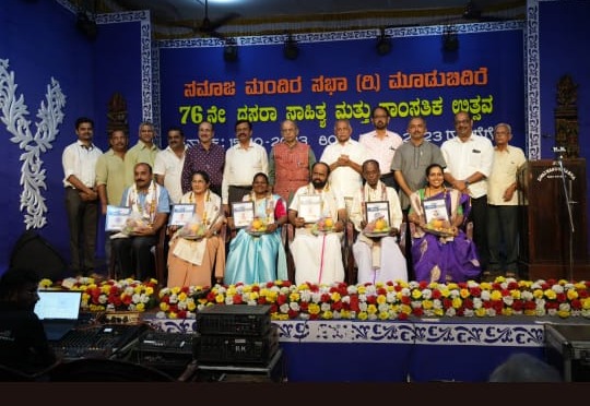 ಸಮಾಜ ಮಂದಿರ ಗೌರವ 2023 ಪುರಸ್ಕಾರ ಪ್ರದಾನ : ಮೂಡುಬಿದಿರೆಯ ವಿವಿಧ ರಂಗಗಳಲ್ಲಿ ಕೊಡುಗೆ ಸಲ್ಲಿಸುತ್ತಿರುವ ರಾಮಕೃಷ್ಣ ಶಿರೂರು (ಶಿಕ್ಷಣ, ಸಂಘಟನೆ) ಸಿಸ್ಟರ್ ಪ್ರೆಸಿಲ್ಲಾ (ಅನಾಥರ ಸೇವೆ) – ಶ್ರೀಮತಿ ಸಂಧ್ಯಾ (ಪರಿಸರ, ಶೂನ್ಯ ತ್ಯಾಜ್ಯ ಕಾಳಜಿ),ಎಸ್. ಸುರೇಂದ್ರ ಪೈ ಪುತ್ತಿಗೆ (ಯಕ್ಷಗಾನ ಚಿಕ್ಕಮೇಳ), ಕು. ಪ್ರೇಮಶ್ರೀ ಕಲ್ಲಬೆಟ್ಟು (ಪತ್ರಿಕೋದ್ಯಮ) ಧೀರಜ್ ಕುಮಾರ್ ಕೊಳ್ಕೆ(ಸಮಾಜ ಸೇವೆ) ಇವರಿಗೆ ಸಮಾಜ ಮಂದಿರ ಗೌರವ ಪುರಸ್ಕಾರವನ್ನು ನೀಡಿ ಸನ್ಮಾನಿಸಲಾಯಿತು.