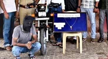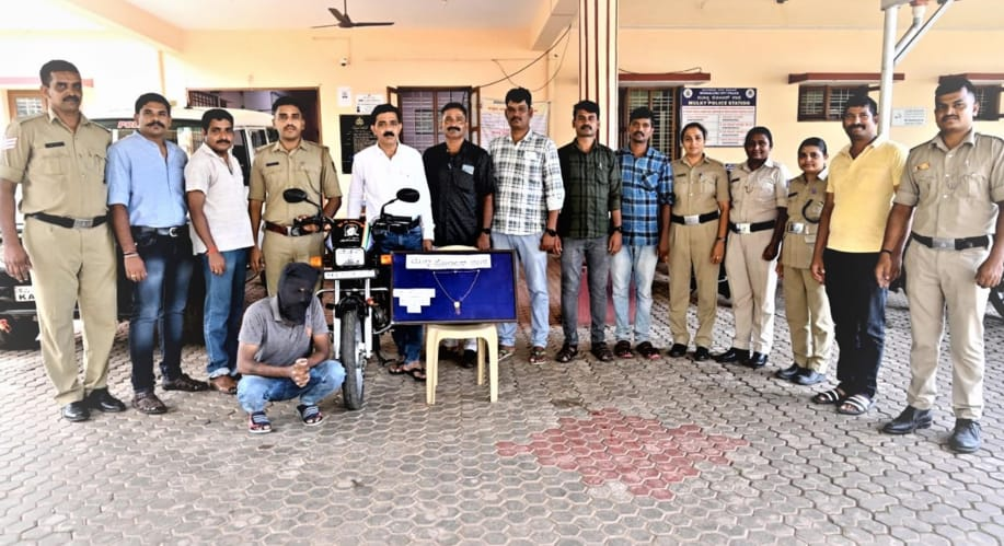 ಮುಲ್ಕಿ:ಪೊಲೀಸ್ ಠಾಣಾ ವ್ಯಾಪ್ತಿಯ ವ್ಯಾಪ್ತಿಯ ಹಳೆಯಂಗಡಿ ಪಾವಂಜೆ ರಸ್ತೆಯಲ್ಲಿ ಮಹಿಳೆಯೋರ್ವರ ಕುತ್ತಿಗೆಯಿಂದ ಸರ ಸುಲಿಗೆ ಮಾಡಲು ಪ್ರಯತ್ನಿಸಿದ ಮತ್ತು ಉಡುಪಿ ಜಿಲ್ಲೆಯ ಕಾಪು ಪೊಲೀಸ್ ಠಾಣಾ ವ್ಯಾಪ್ತಿಯ ಕಟಪಾಡಿ ಎಂಬಲ್ಲಿ ಮಹಿಳೆಯ ಕುತ್ತಿಗೆಯಿಂದ ಸರ ಸುಲಿಗೆ ಮಾಡಿದ ಆರೋಪಿಯನ್ನು ಮುಲ್ಕಿ ಪೊಲೀಸರು ಬಂಧಿಸಿದ್ದು ಲಕ್ಷಾಂತರ ಮೌಲ್ಯದ ಚಿನ್ನದ ಹವಳದ ಸರ ಮತ್ತು ಕೃತ್ಯಕ್ಕೆ ಬಳಸಿದ ಮೋಟಾರ್ ಸೈಕಲನ್ನು ವಶಪಡಿಸಿಕೊಂಡಿದ್ದಾರೆ.