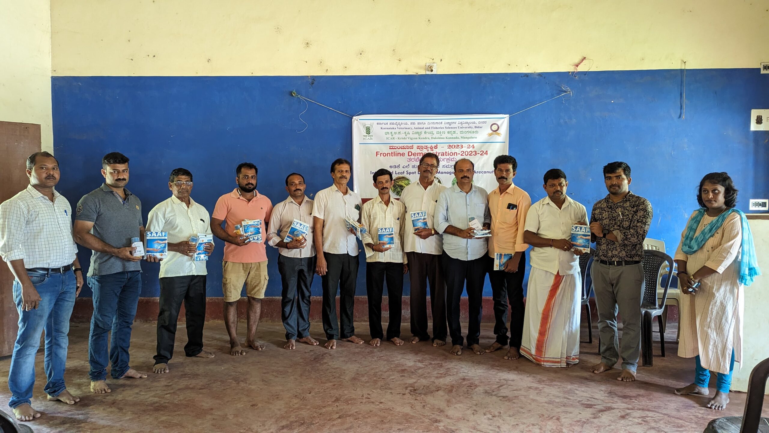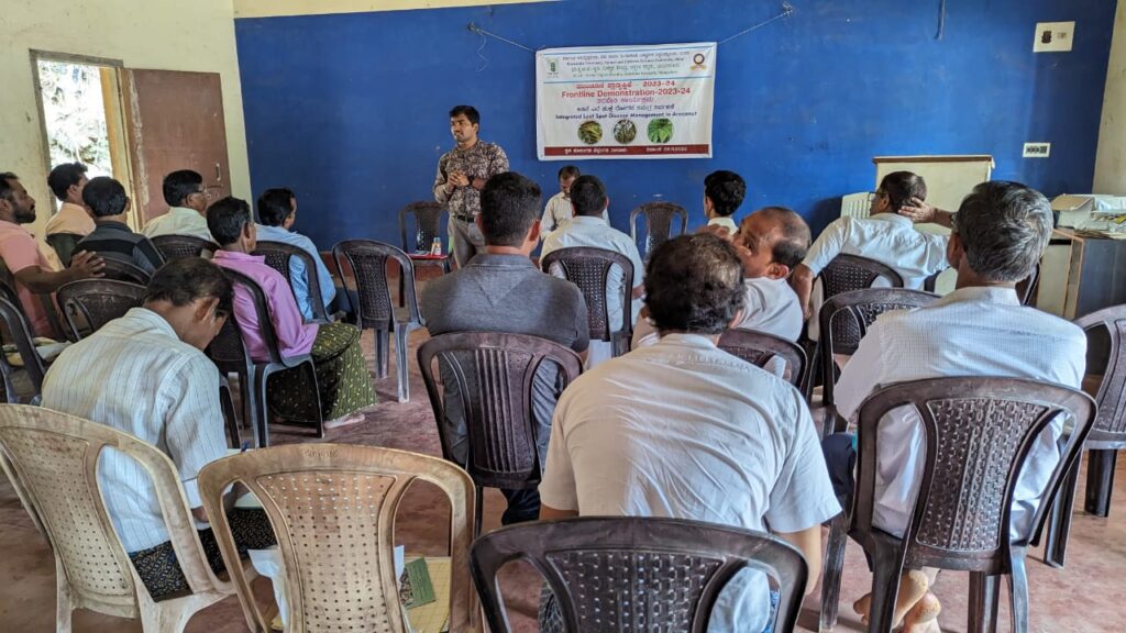 ದಕ್ಷಿಣ ಕನ್ನಡ : ಜಿಲ್ಲೆಯ ಬೆಳ್ತಂಗಡಿ ತಾಲೂಕಿನ ಹೊಸಂಗಡಿಯಲ್ಲಿ ಕೃಷಿ ಮುಂಚೂಣಿ ಪ್ರಾತ್ಯಕ್ಷಿಕೆ 2023-24 ರ ಅಡಿಯಲ್ಲಿ ಭಾ.ಕೃ.ಅ.ಫ- ಕೃಷಿ ವಿಜ್ಞಾನ ಕೇಂದ್ರ (ದಕ್ಷಿಣ ಕನ್ನಡ) ಮಂಗಳೂರು, ವಿಜಯ ಗ್ರಾಮೀಣ ಅಭಿವೃದ್ದಿ ಪ್ರತಿಷ್ಠಾನ (ರಿ.) ಮಂಗಳೂರು ಹಾಗೂ ಪ್ರೆಂಡ್ಸ್ ಕ್ಲಬ್ (ರಿ.) ಹೊಸಂಗಡಿ ಇವರುಗಳ ಸಹಭಾಗಿತ್ವದಲ್ಲಿ ಅಡಿಕೆ ಬೆಳೆಯಲ್ಲಿ ಎಲೆ ಚುಕ್ಕೆ ರೋಗದ ನಿರ್ವಹಣೆ ಕುರಿತು ತರಬೇತಿ ಕಾರ್ಯಕ್ರಮವನ್ನು ಹಮ್ಮಿಕೊಳ್ಳಲಾಗಿತ್ತು.