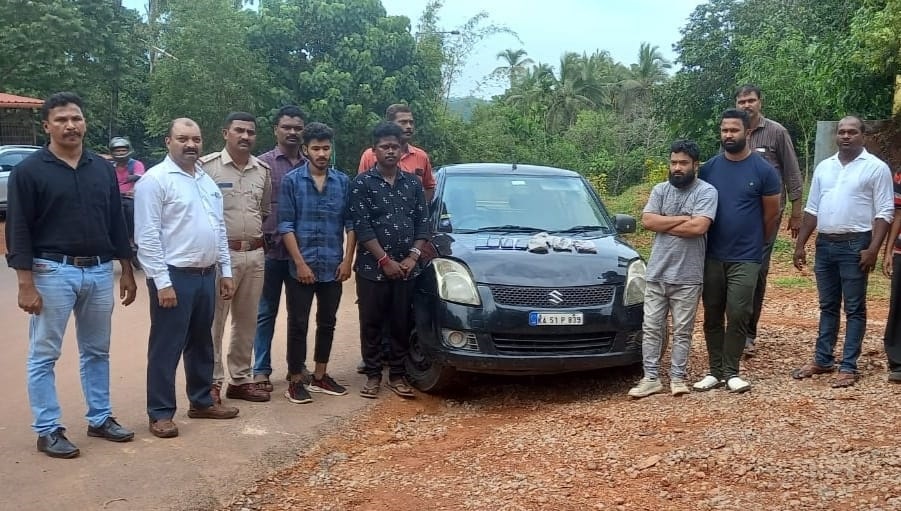 ಉಡುಪಿ:ಕಾರೊಂದರಲ್ಲಿ ಗಾಂಜಾ ಮಾರಾಟ ಮಾಡಲು ಪ್ರಯತ್ನಿಸುತ್ತಿದ್ದ ನಾಲ್ವರು ಗಾಂಜಾ ಪೆಡ್ಲರ್ ಗಳನ್ನು ಮಣಿಪಾಲ ಪೊಲೀಸರು ಬಂಧಿಸಿದ ಘಟನೆ ಮಣಿಪಾಲ ಪೆರಂಪಳ್ಳಿಯ ಶೀಂಬ್ರಾ ಬ್ರಿಡ್ಜ್ ಬಳಿ ನಡೆದಿದೆ.