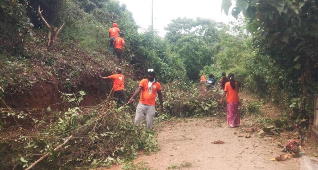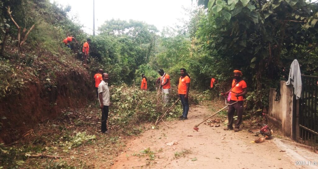 ಕಲ್ಲಡ್ಕ ; ಕಾಂಕ್ರೀಟ್ ರಸ್ತೆಯ ಸುತ್ತಮುತ್ತ ಗಿಡಗಳು ಗಂಟೆಗಳು ಬೆಳೆದು ನಿಂತು ಶಾಲಾ ಮಕ್ಕಳು ನಡೆದು ಕೊಂಡು ಹೋಗಲು ಭಯಪಡುತ್ತಿದ್ದ ನೋಡಲು ಕಾಲು ದಾರಿಯಾಗಿ ಕಾಣುತ್ತಿದ್ದ ಬಂಟ್ವಾಳ ತಾಲೂಕಿನ ಬೋಳಂತೂರು ಗ್ರಾಮದ ಪೂಪಾಡಿ ಕಲ್ಲು – ನಾರಂಕೋಡಿ ರಸ್ಥೆಯ ಬಗ್ಗೆ ಸ್ಥಳಿಯರು ಅನೇಕ ಬಾರಿ ಪಂಚಾಯತ್ಗೆ ಮನವಿ ನೀಡಿದರೂ ಸ್ಪಂದಿಸದೆ ಯಾವುದೇ ಕ್ರಮಗೊಳ್ಳದೆ ಇದ್ದು ಕಡೆಗೆ ಸ್ಥಳಿಯರಾದ ಮಹಮ್ಮದ್ ಹಮೀದು ಹಾಗು ಚರಣ್ ಇವರು ಯೋಜನೆಯ ಕಲ್ಲಡ್ಕ ಶೌಯ೯ ವಿಪತ್ತು ತಂಡದವರಿಗೆ ಮನವಿ ನೀಡಿದ್ದು ತಕ್ಷಣ ಕಾಯ೯ಪ್ರವತ೯ರಾದ ಶೌಯ೯ ತಂಡದವರು ರಸ್ತೆಯ ಎರಡು ಬದಿಯಲ್ಲಿ ಬೆಳೆದ ಗಿಡಗಳನ್ನು ಕಡಿದು ಸ್ವಚ್ಚತೆ ಮಾಡಿದರು.